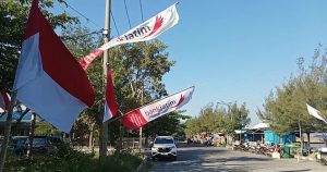 Terlihat Ratusan bendera Merah Putih serta Umbul Umbul milik Bank Jatim memenuhi sudut sudut jalan ditepian pantai di wilayah Pelabuhan Perikanan Pantai Mayangan, Sabtu (17/8/24) pagi.