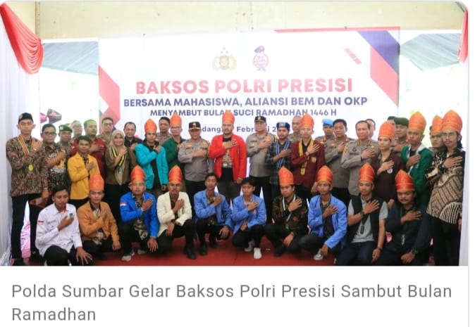 Padang || Kepolisian Daerah Sumatera Barat (Polda) menggelar kegiatan bakti sosial (baksos) bertajuk “Polri Presisi” bekerja sama dengan Badan Eksekutif Mahasiswa (BEM Sumbar), Organisasi Kepemudaan (OKP), di Lapangan Imam Bonjol, Padang, Kamis (27/2/25).