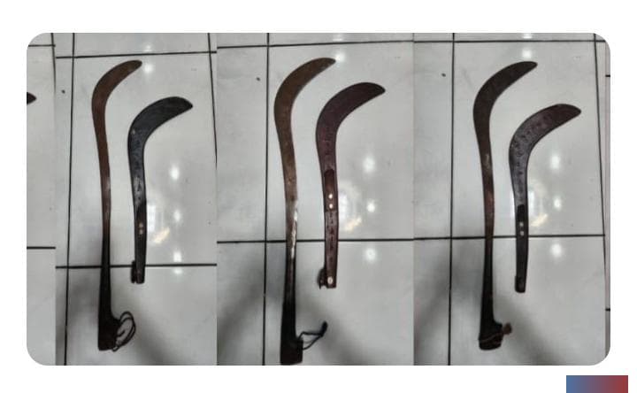 Dan di dapati 5 (lima) orang terduka pelaku berada di bak belakang mobil tersebut, dan kedapati membawa senjata tajam jenis clurit lanjutnya.