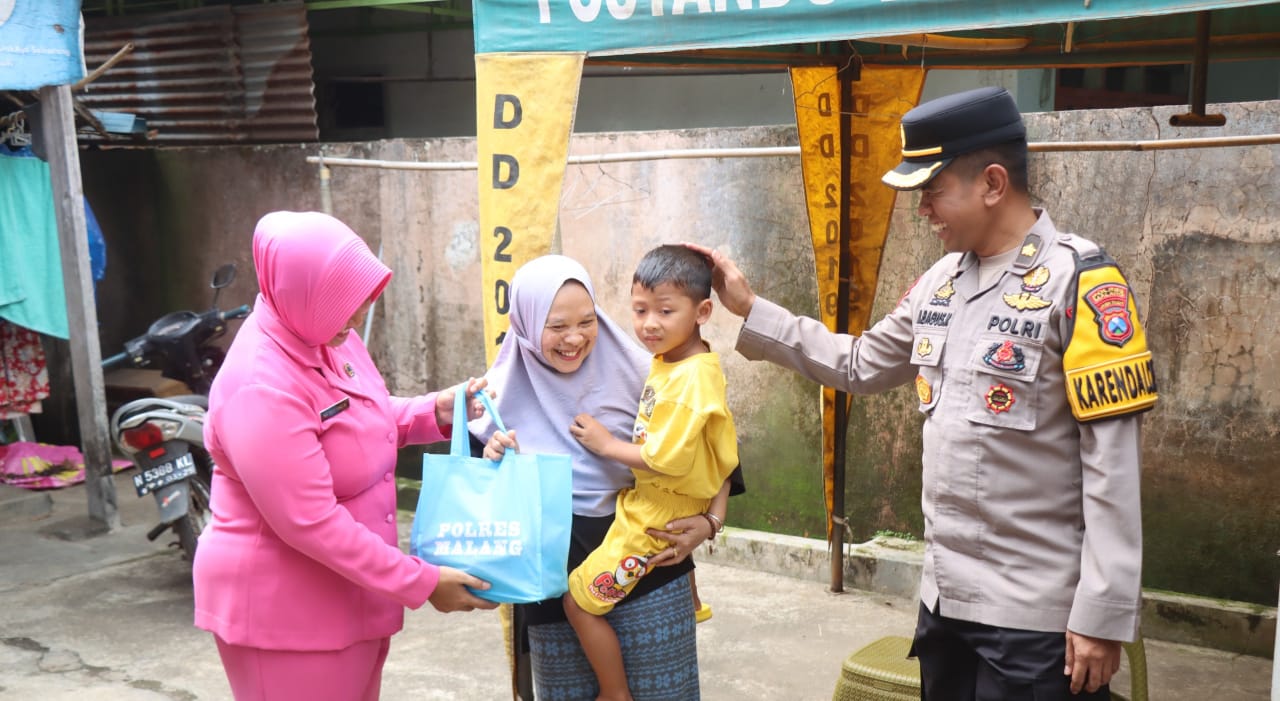 Kabarmetro.id, Malang || Kepolisian Resor Malang, Polda Jawa Timur, membagikan ratusan paket bantuan sembako kepada warga kurang mampu serta pencegahan stunting di Kabupaten Malang.