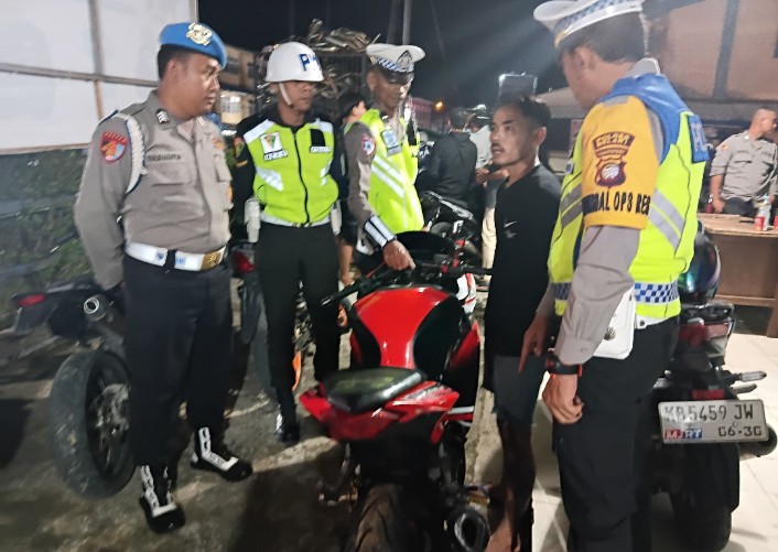 MELAWI || Penindakan tegas terhadap pengendara kendaraan menggunakan knalpot tidak sesuai klasifikasi dan di kenal knalpot brong dilakukan Polres Melawi dalam Operasi Keselamatan Kapuas 2026 di tujuh titik seat di sepanjang Jalan Juang dari seat Tugu Juang 1, Seat Simpang Aming, Seat Simpang Jalan Pendidikan, Seat Simpang Jalan Putri Tanjung, Seat Simpang Muhammadiyah, Seat Tugu Juang II dan Seat Simpang Jalan Kramat Raya, Sabtu (8/2/2026) malam.
