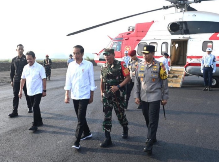 Selanjutnya Presiden dan rombongan menuju lokasi panen perdana ikan nila salin dengan berjalan kaki untuk melaksanakan panen raya ikan nila salin.