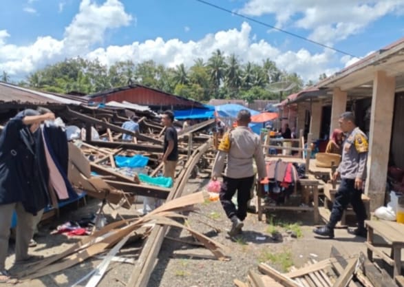 Tim gabungan itu juga membantu mendirikan tenda untuk pedagang yang terdampak robohnya los pasar tersebut.