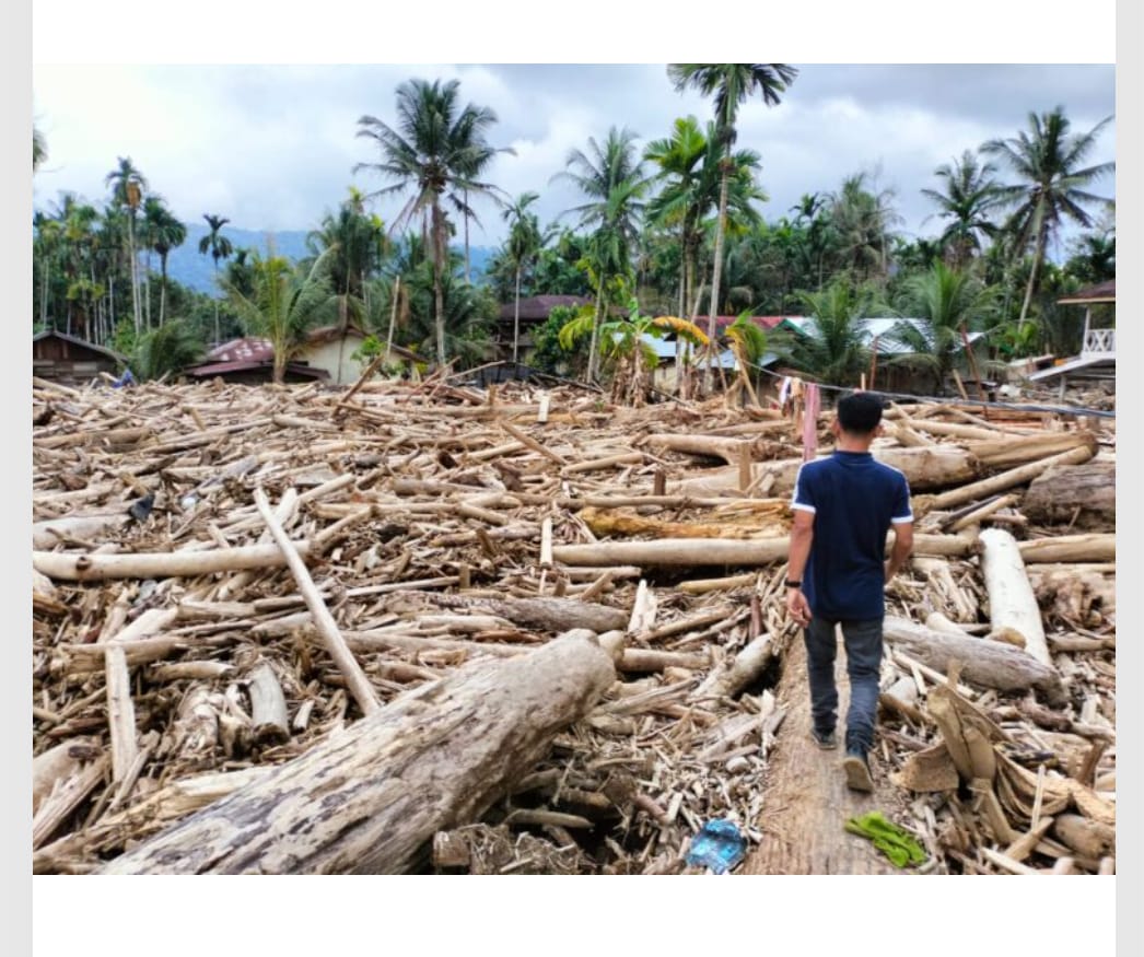 Pasca banjir tumpukan barang pohon berserakan. (Foto: KM).