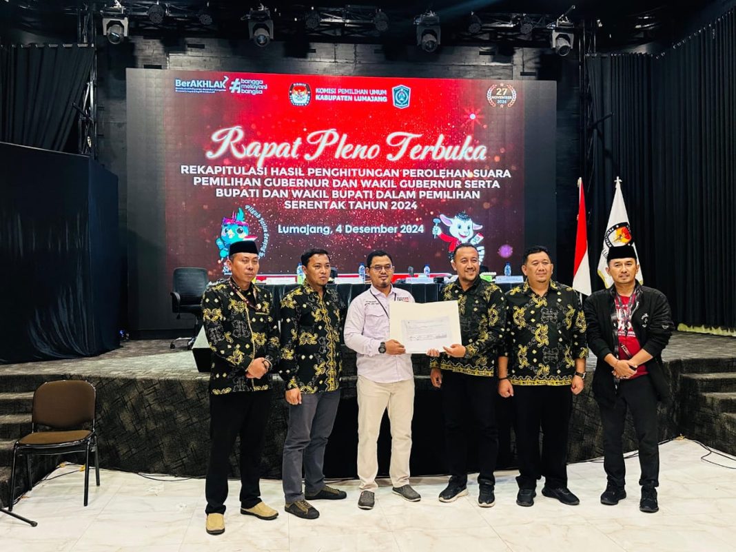 Kabarmetro.id, Lumajang || Komisi Pemilihan Umum (KPU) Lumajang, menggelar rapat pleno terbuka rekapitulasi hasil perhitungan perolehan suara, pemilihan Gubernur dan Wakil Gubernur serta Bupati dan Wakil Bupati dalam pemilihan serentak tahun 2024, RCC Jlt Lumajang, Rabu (4/12/24).