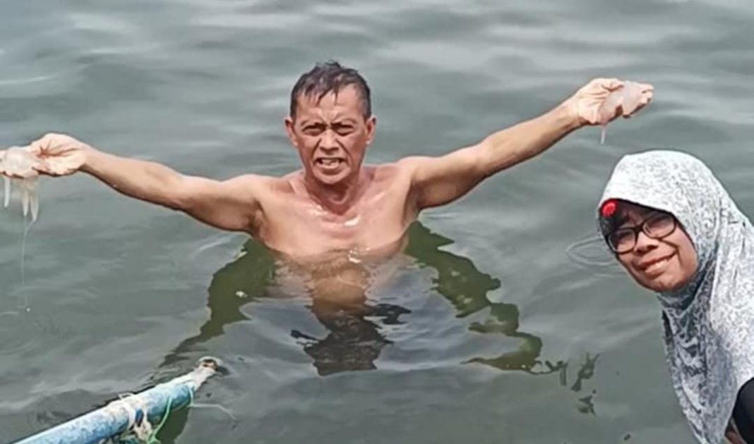 “Sering kesini, cuma baru kali ini melihat fenomena munculnya ribuan ubur-ubur, dan penasaran saya tangkap ternyata ubur-ubur ini kulitnya lunak seperti jeli ” ujar Yoso, Senin (17/2/25) siang.