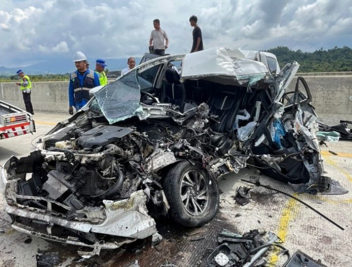 Kecelakaan lalu lintas di ruas Jalan Tol Sigli–Banda Aceh KM 19.(Foto: Istimewa).