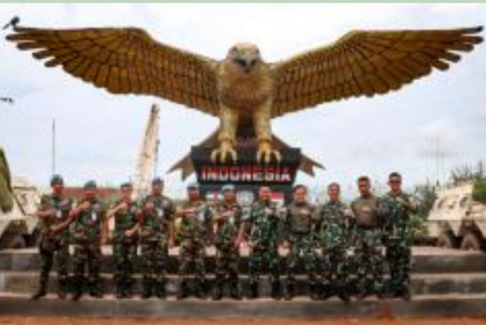 Mengakhiri kunjungan, Dansatgas Kizi TNI Konga XXXVII-J Minusca Car saling bertukar cindera mata dan dilanjutkan dengan foto bersama di depan monumen patung Garuda Indo Eng Coy Camp. (Rls)