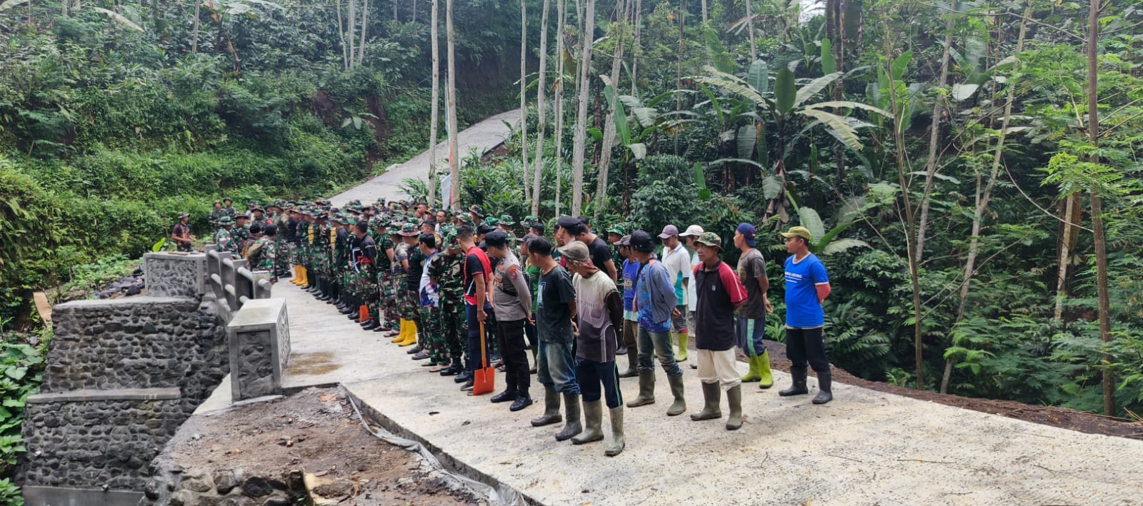 Lumajang || TMMD ke-123, Dalam rangka memastikan kesiapan seluruh unsur yang terlibat dalam TNI Manunggal Membangun Desa (TMMD) ke-123, pengecekan personel dilakukan di Jembatan Dusun Tugu, Desa Burno, Kecamatan Senduro, Lumajang, Kamis (20/2/25). Kegiatan ini melibatkan Satgas TMMD, Polri, serta masyarakat setempat.