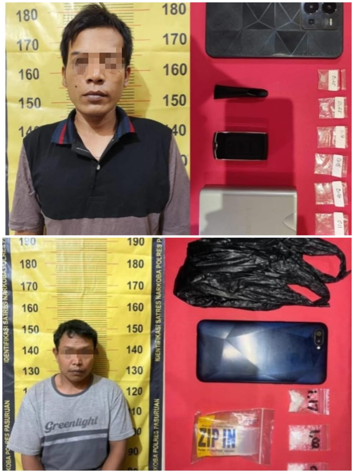 Kabarmetro.id, PASURUAN – Anggota Satresnarkoba Polres Pasuruan yang dipimpin oleh Kasat Resnarkoba Iptu Agus Yulianto, S.H. sekali lagi berhasil mengamankan 2 (dua) orang pria pengedar Narkoba jenis Sabu-Sabu di wilayah Kecamatan Rembang dan Kecamatan Prigen, Kabupaten Pasuruan, Kamis (6/6/24) dan Jum’at (7/6/24).