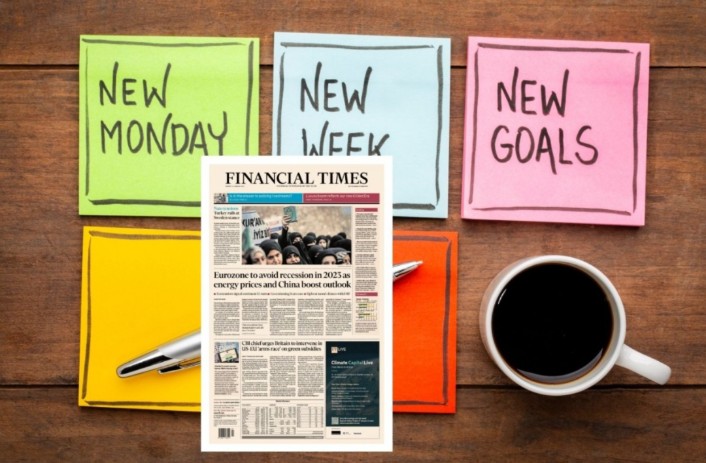 Senin pagi, 23 Januari 2023, halaman-halaman Financial Times (UK) memotret denyut pertama pekan yang baru dibuka.