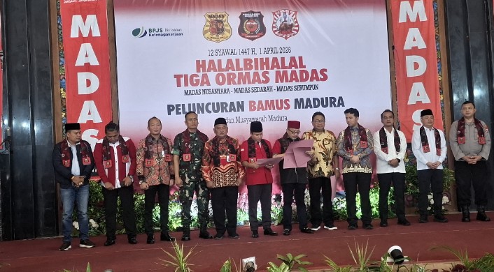 MADURA || Kegiatan halal bihalal yang dirangkaikan dengan peluncuran Badan Musyawarah (Bamus) Madura oleh tiga organisasi besar—Madas Nusantara, Madas Serumpun, dan Madas Sedarah—menjadi tonggak penting dalam memperkuat konsolidasi serta sinergi lintas elemen masyarakat di Pulau Madura.