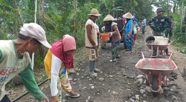 BOYOLALI || Kerja keras dan semangat pantang menyerah bagi anggota satgas TNI Manunggal Membangun Desa (TMMD) Reg Ke 123 Kodim 0724/Boyolali Dalam poses pengecoran jalan rabat beton di Desa Kalinanas Kecamatan Wonosamudro Kabupaten Boyolal, Kamis (6/3/25).