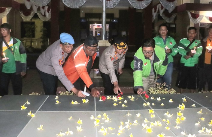 “Kegiatan doa bersama ini adalah ungkapan keprihatinan dan belasungkawa. Kami pun berdiskusi dengan teman-teman driver online, dan kami melakukan komunikasi dengan baik agar suasana yang sudah baik ini tetap terjaga,” ujar kapolres.