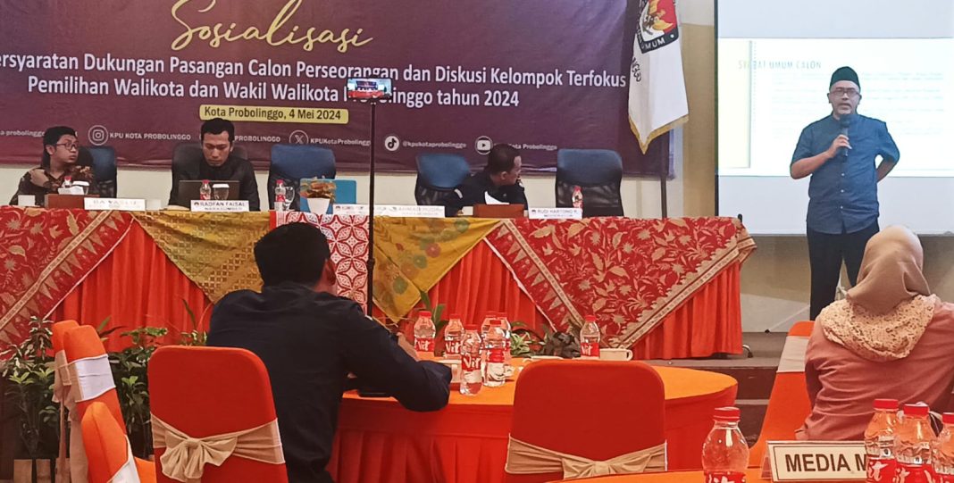 Kabarmetro.id, KOTA PROBOLINGGO – Guna mempersiapkan dan melaksanakan berbagai tahapan Pilkada tahun 2024, Komisi Pemilihan Umum (KPU) Kota Probolinggo menggelar sosialisasi “Pemenuhan Persyaratan Dukungan Pasangan Calon Perseorangan Pada Pemilihan Kepala Daerah dan Wakil Kepala Daerah Tahun 2024,” bertempat di Bale Hinggil Jalan Dr,Sutomo Kecamatan Kanigaran.