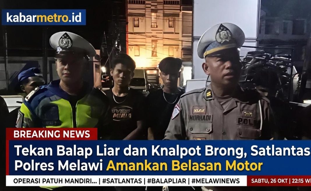 MELAWI || Guna menciptakan ketertiban umum dan kenyamanan masyarakat dalam berkendara, Satuan Lalu Lintas (Satlantas) Polres Melawi gencar melaksanakan patroli skala intensif. Fokus utama kali ini menyasar pada aksi balap liar dan penggunaan knalpot tidak standar (brong) yang kerap meresahkan warga di kawasan Jalan Juang, tepatnya di jalur Naruto, Kabupaten Melawi, (12/4/2026).