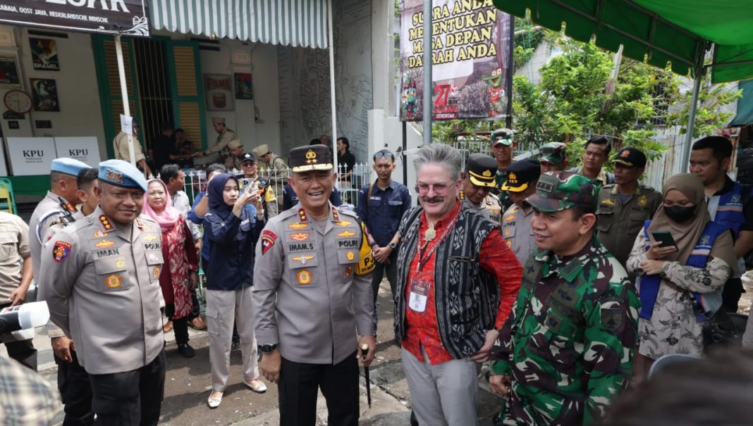 Sejumlah tempat pemungutan suara (TPS) di Surabaya dan Bangkalan dikunjungi oleh Kapolda Jatim bersama rombongan.