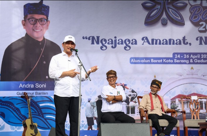 SERANG || Achmad Dimyati Natakusumah resmi membuka rangkaian Seba Baduy 2026 di Alun-Alun Barat Kota Serang, Jumat (24/4/2026). Tradisi tahunan ini bakal diikuti sekitar 2.000 warga Baduy yang datang untuk menjalankan ritual sekaligus bersilaturahmi dengan Pemprov Banten.